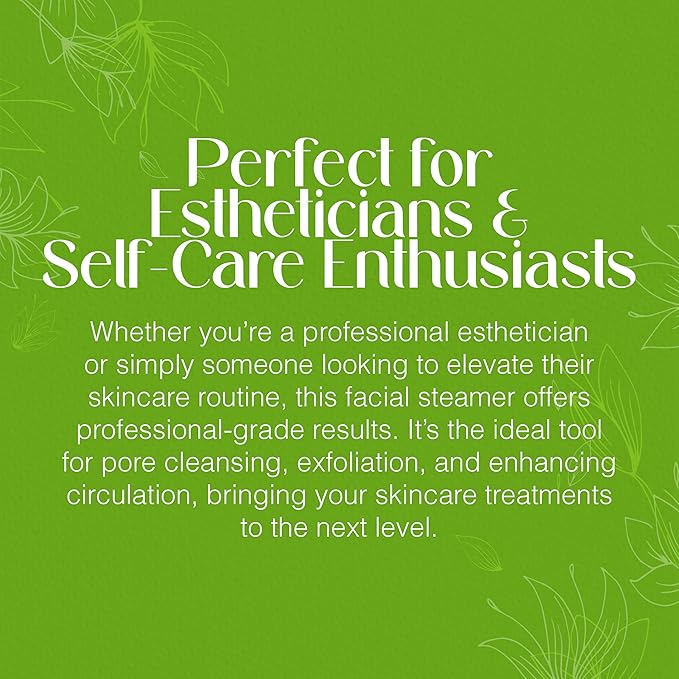 - Bringing Skin Care to the Next Level - Using this professional facial steamer for estheticians, your clients will enjoy up to 60 minutes of soothing vapor. This esthetician facial steamer features a stylish glass jar with a connecting bar for the lamp — a fusion of style and functionality!