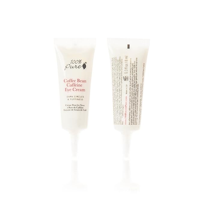 100% PURE Coffee Bean Caffeine Eye Cream Refresh & Hydrate Under Eye Treatment Reduce Puffiness, Dark Circles, Wrinkles with Green Tea, Rose Hip, Vitamin E - Youthful Vibrant Eyes - Vegan - .3 oz