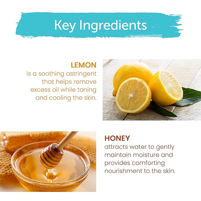 - WITH LEMON & HONEY: To remove excess oil, tone and hydrate the skin, leaving it fresh and soft. Works to tighten pores and help maintain normal sebum secretion.