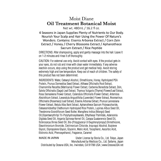 MOIST DIANE Hair Treatment with Pump for Women & Men, Natural Organic Japanese Hair Conditioner, Sulfate & Silicon Free Hydrating & Moisturizing Haircare Products, Botanical Moist 16.9 Fl Oz/500mL