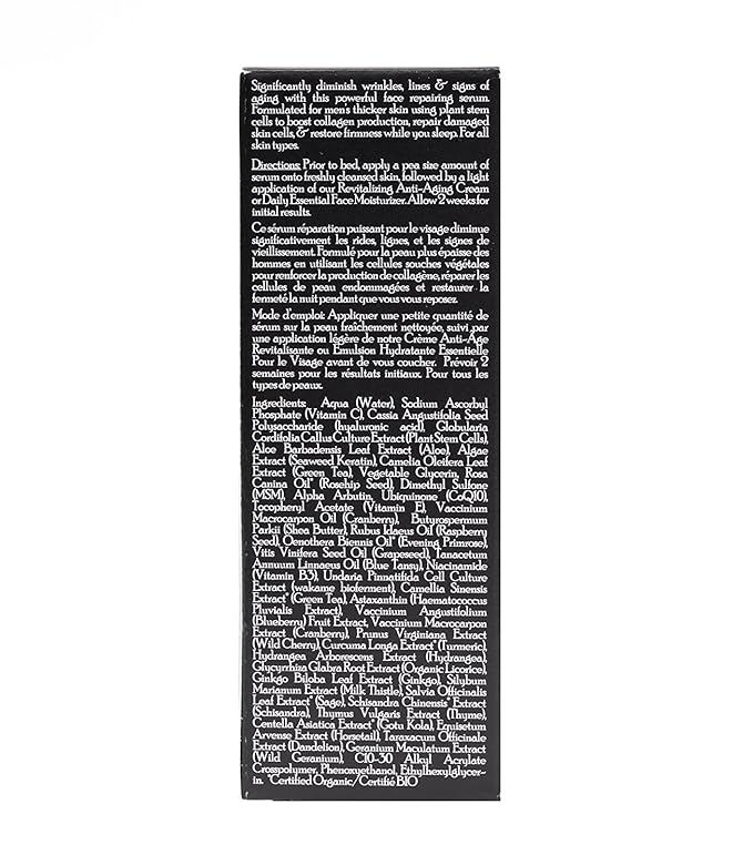 - How It Works: Our men’s face serum uses an exclusive combination of powerful, natural ingredients. It penetrates quickly into the skin to firm, restore and revive collagen production.