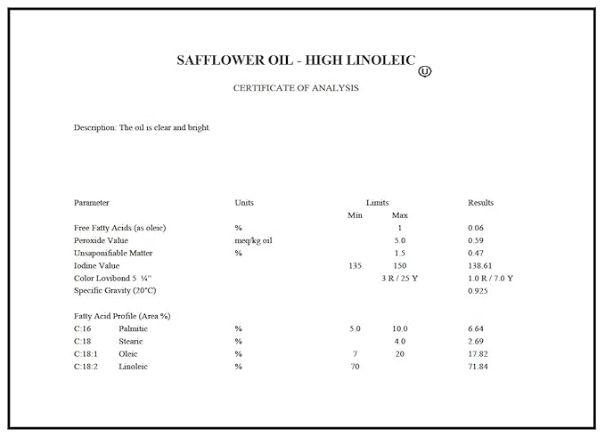 - 🔶 NON-COMEDOGENIC: Although noncomedogenic safflower oil can be used for different skin types it works especially well for those with oily acne prone skin. It has a comedogenic rating of zero to help prevent break outs from clogged pores. With a high Linoleic acid content it helps to keep the sebum, the skin's natural oil, levels balanced. Safflower oil act as a lubricant that prevents water from leaving the skin, thereby locking in the moisture for healthy, glowing skin.