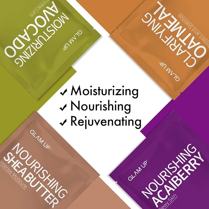 GLAM UP Premium Facial Sheet Mask 12 Combo (Pack of 12) | Clean Face Masks Skincare, Hydrating Face Masks, Moisturizing, Soothing, Beauty Mask For All Skin Type Variety Beauty Mask Set