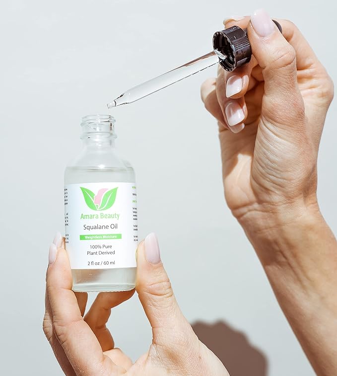 Amara Beauty Squalane Oil Moisturizer with 100% Pure Plant Derived Squalane for Face, Body, Skin and Hair - Face Oil 2 fl. oz.