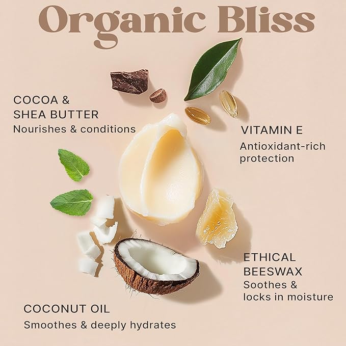 - PROTECTS FROM ENVIRONMENTAL DAMAGE: Shield your lips from harsh weather conditions, including wind and sun, with a balm that creates a 𝐛𝐚𝐫𝐫𝐢𝐞𝐫 𝐚𝐠𝐚𝐢𝐧𝐬𝐭 𝐞𝐧𝐯𝐢𝐫𝐨𝐧𝐦𝐞𝐧𝐭𝐚𝐥 𝐬𝐭𝐫𝐞𝐬𝐬𝐨𝐫𝐬. Organic cocoa butter provides an extra layer of protection, helping prevent future dryness.