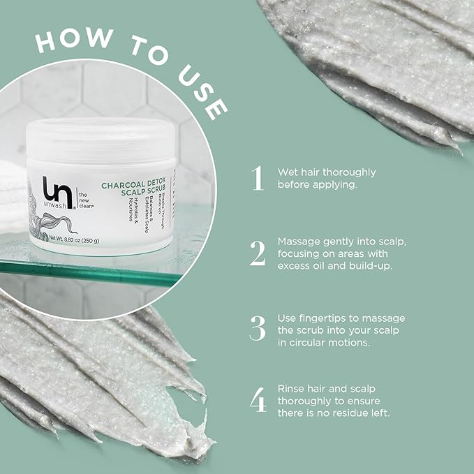 Unwash Charcoal Detox Scalp Scrub - Detoxify, Exfoliate, & Rebalance Hair & Scalp, Removes Build-Up, For Dry, Itchy Scalps Paraben Free, 8.82 oz