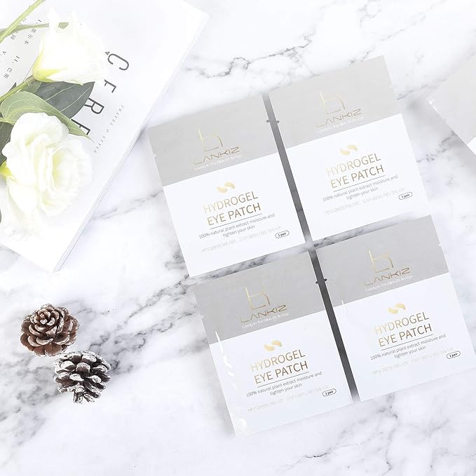 LANKIZ 100 Pairs Under Eye Gel Pads for Lash Extensions, 100% Natural Plant Extract, Collagen Hydrogel, Lint-Free, Moisturizing, Reduces Dark Circles and Eye Puffiness