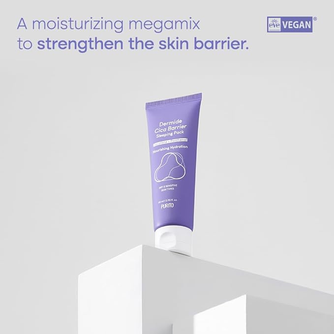 - This sleeping pack helps to soothe the skin exhausted from the damaging UV rays and other environmental stressors overnight. It is formulated with skin-identical ingredients like Hyaluronic Acid and Ceramide, which strengthen the skin barrier and protect it from the harmful environmental stressors. This product forms a healthy moisture barrier that prevents water loss and keeps skin well-hydrated overnight. Treat your sleep-deprived skin with PURITO Dermide Cica Barrier Sleeping Pack.