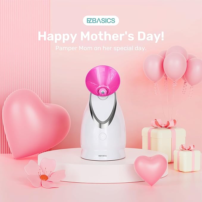EZBASICS Facial Steamer Ionic Face Steamer for Home Facial, Warm Mist Humidifier Atomizer for Face Sauna Spa Sinuses Moisturizing, Unclogs Pores, 1 Pack + 5 Stainless Steel Skin Kit Pink