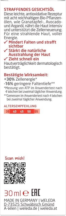 Weleda Face Care Plumping Oil, 1 Fluid Ounce, Plant Rich Moisturizer with Pomegranate Extract and Aloe Vera