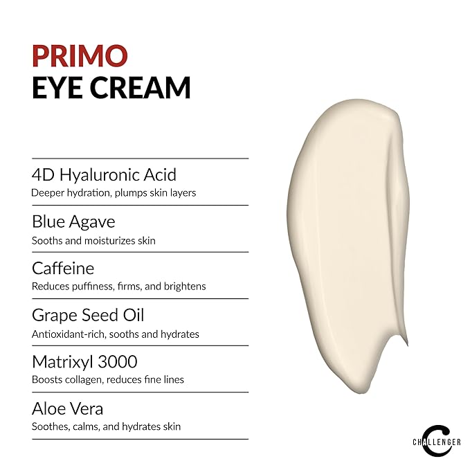- The Goods: With Plant Stem Cells for rejuvenation, 4D Hyaluronic Acid, Aloe, Matrixyl 300, Vitamin C & so much more, Challenger’s Primo Series are Mineral Oil Free, Silicone Free, Paraben Free, Fragrance Free to help keep your face happy and smiling for years to come