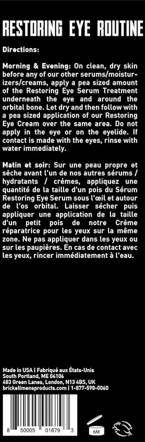 Brickell Men's Restoring Eye Routine for Men, Eye Serum and Eye Cream for Men, Natural and Organic, Unscented, Men's Skin Care Gift Set