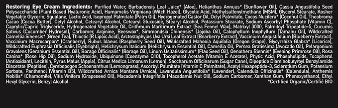 - Key Ingredients: Natural & Certified Organic ingredients, including hyaluronic acid, protein peptides, vitamin C, caffeine, MSM, and aloe.