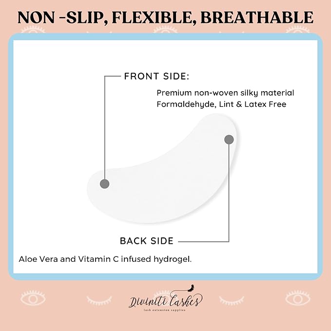 - Aloe Vera & Vitamin C - Enjoy eyepads w/ aloe vera & vitamin C ingredients to moisturize, hydrate, & reduce puffiness around sensitive eye area, adding to the gorgeous effect of your clients’ lashes.
