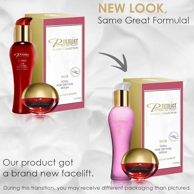 Premier Dead Sea Classic BIOX SERUM and BIOX EYE CREAM Total Age Treatment, Anti-Age, anti-wrinkle, anti-expression marks age defying Complex, soft, gentle, non-tacky 1.7 FL oz. + .34 FL oz.