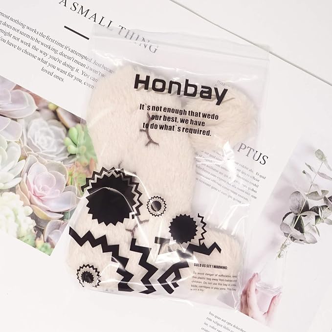 Honbay Plush Rabbit Sleeping Eye Mask Cute Cartoon Animal Eye Mask for Children (Beige)