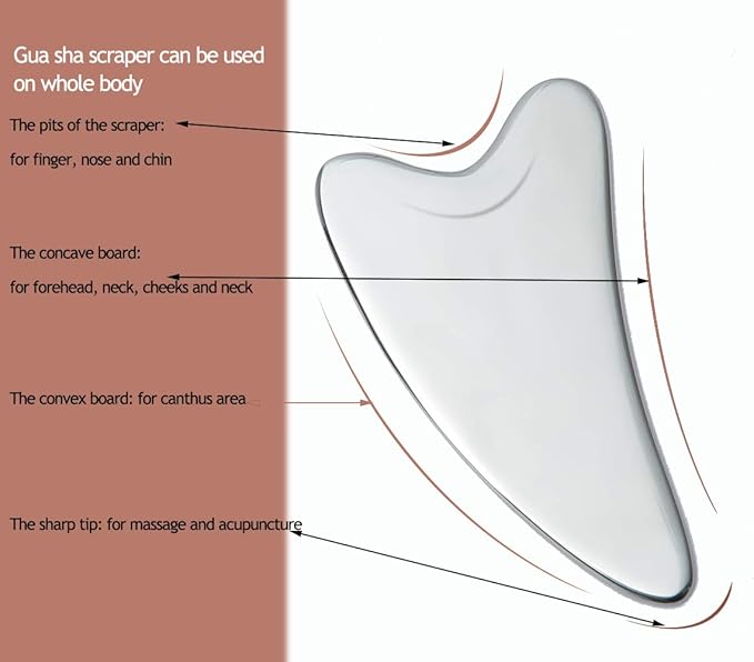 - 💗 Multipurpose gua sha scraper: The gua sha scraper is used for facial massage, which can be used on the whole body, help absorb skincare products like serums, oils, lotions, and moisturizers into cells for lifting and tighten the face, relieving sniff neck and frozen back, making it your face look slimmer by shrinking swollen facial tissues and pores