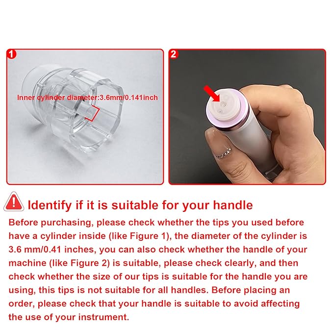 - 【USAGE AND NOTICE】Please pay attention to whether the product matches the size and shape of the handle before purchasing. If not, you can go to our other link selection. Remove from the packaging, ensuring that it is correctly fitted and locked in the internal slot. Then screw tightly onto the appropriate handle required. Switch on the machine.When finished, unscrew the accessories and dispose of tips properly. Clean the handle and the machine after use.