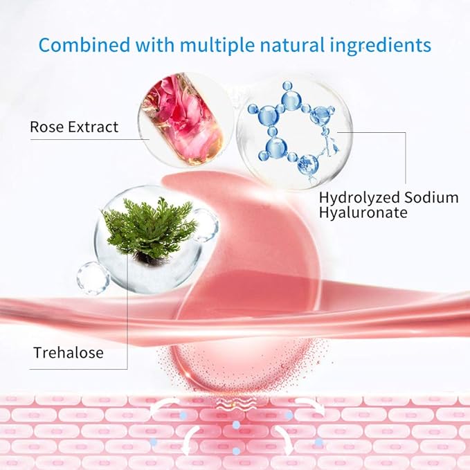 - 【Active Ingredients】Combined with multiple natural ingredients: Rose Extract; Applicable to all skin types due to its outstanding moisturizing and antiallergic ability. Hydrolyzed Sodium Hyaluronate; Mate dry and coarse skin becomes soft, tender, and elastic. Trehalose: The protein molecule vitality is protected to keep cell viability and moisture.