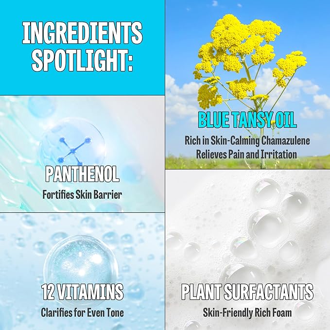 - SKIN-LOVING INGREDIENTS. Enriched with Blue Tansy Oil, Olive Fruit Oil, and Soapwort Leaf Extract, this hydrating face wash cleanses while nourishing the skin. Botanical surfactants like Soapnut and Soapbark Tree Extract create a gentle lather, lifting away impurities without stripping moisture.