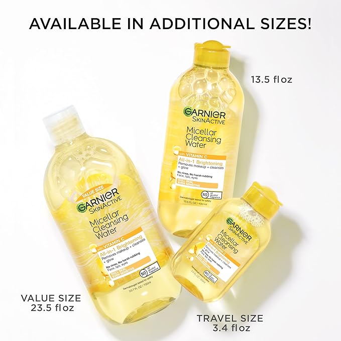 - Micellar Cleansing Water with Vitamin C gently cleanses skin, removes makeup, and brightens dull skin in just one step, without harsh rubbing or rinsing