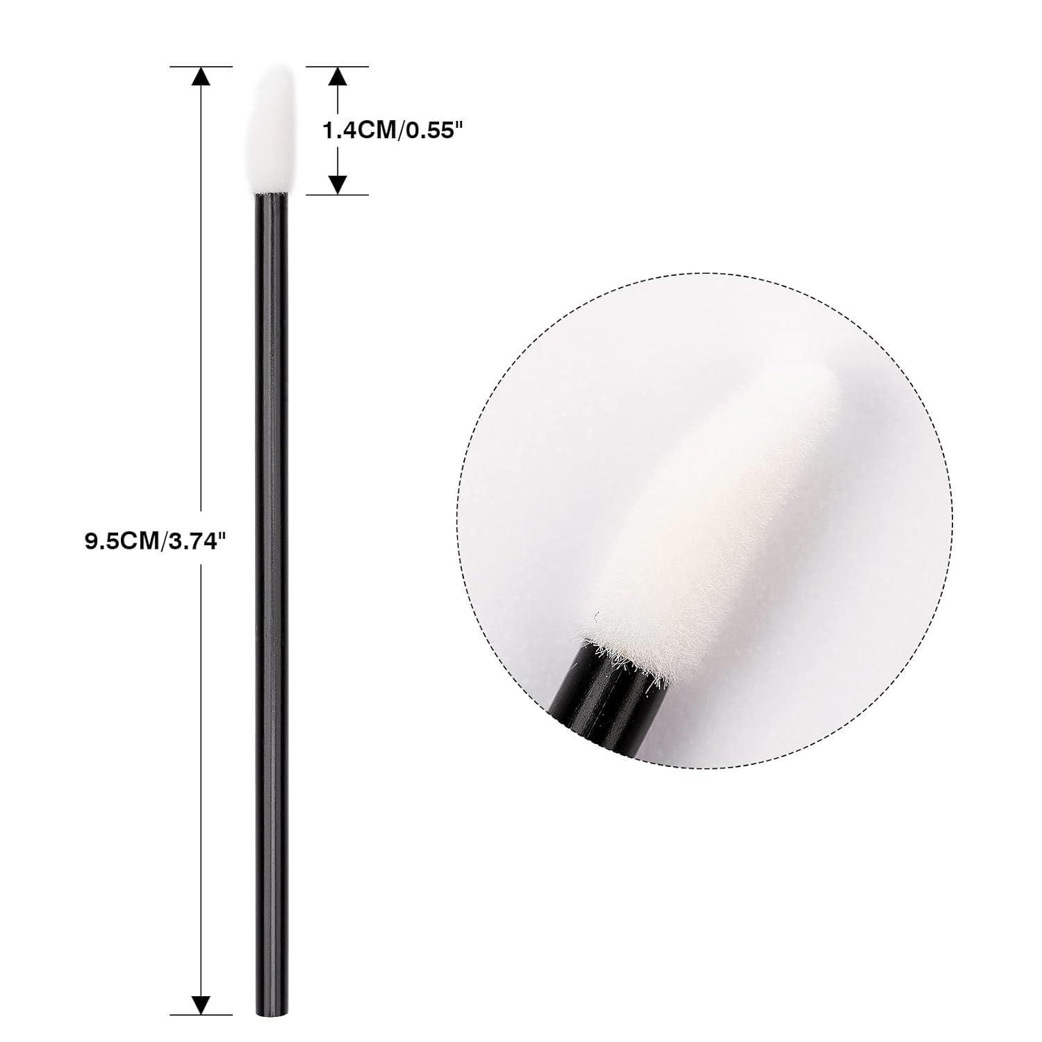 - Package & Size: 100PCS disposable lip brushes, enough quantity for you to use and change. The lip wands are 3.54''/9cm long, the cotton brush head is 0.47''/1.2cm, easily suited for your daily needs and perfect for lip gloss or lipstick