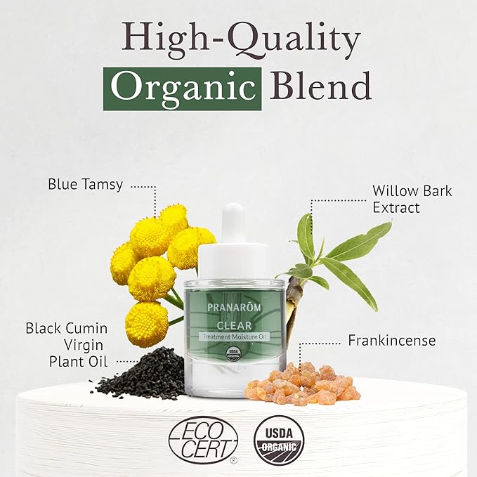 Pranarom - Clear Treatment Moisture Oil (1oz / 30ml) - 100% Pure & Natural Essential Oil Moisturizing Oil for Oily Skin Treatment & Nourishment
