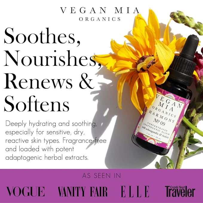 - Soothes, Nourishes, Renews & Softens: Bring out your skin’s most beautiful qualities with our Adaptogenic Elixir! Loaded with potent adaptogenic herbs & deeply hydrating facial oils high in Vitamin E and essential fatty acids to replenish moisture, calm redness, and restore vitality. Enriched with Organic Marshmallow & Licorice Root that benefits dry & sensitive skin. It also helps ease discomfort caused by inflammation. Infusion imparts a subtle natural herbaceous scent, no added fragrance.