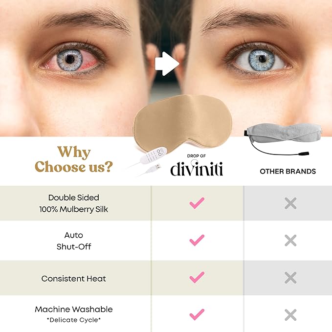 - 🔥 Adjustable Heat & Timer – An easy to use fully adjustable warm eye compress mask for dry eyes. From 100°F to 130°F. Continuous soothing warmth or timing modes of 15, 30 or 60 minutes. Enjoy the customization of this eye warmer for dry eyes.