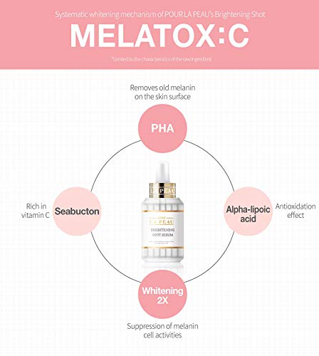 - Product Benefits : The POUR LA PEAU Brightening Shot Serum is a luxurious concoction of MelaTox:C, Symwhite377, Niacinamide, and Luisant Mela Xd designed to envelop your skin in luminous beauty. This gem from the heart of Korean skincare delivers deep hydration, evens out skin tone, and provides a youthful glow. The POUR LA PEAU Brightening Shot Serum is a luxurious concoction of MelaTox:C, Symwhite377, Niacinamide, and Luisant Mela Xd designed to envelop your skin in luminous beauty. This gem from the heart of Korean s… See more