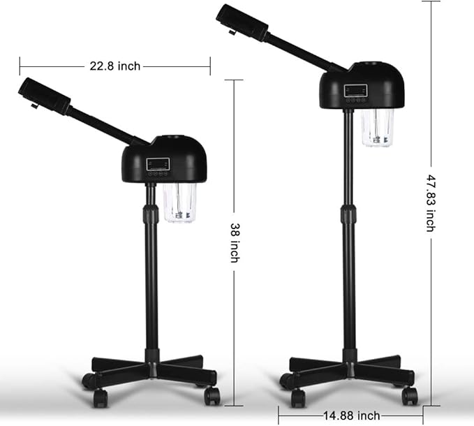 - 3 in 1 Facial Steamer: The machine has 3 functions: steam, and timer. And functions can be individually turned on or off according to your needs, which can facilitate your work to the greatest extent. Cleanse your skin with this facial standing steamer. It has a dual action mode that uses negative ions and boiling water to produce infused steam.