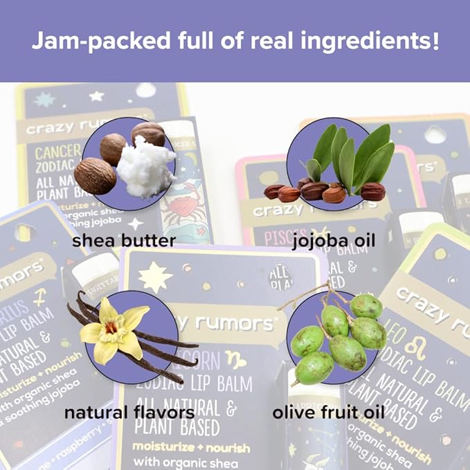 Crazy Rumors Taurus Zodiac All Natural, Plant Based Lip Balm to Moisturize and Nourish your Lips - Earth Blend (Sweet Vanilla, Fragrant Rose and Plum)