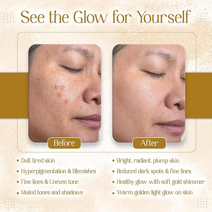 - Infused with 24K Gold Flakes: This luxurious Kumkumadi oil enhances skin elasticity, Invigorates skin for a refreshed appearance, and imparts a radiant golden glow, making your skin visibly brighter, firmer, and more youthful with every use.