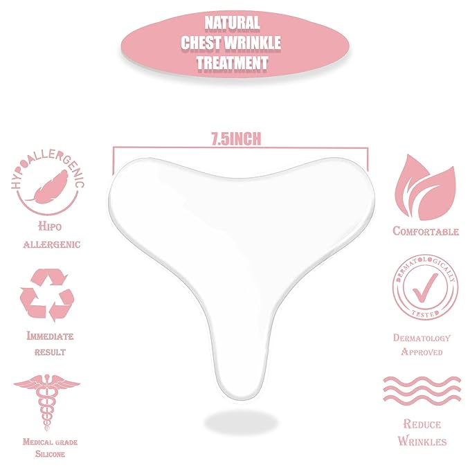 - EASY TO USE AND COMFORTABLE: This silicone chest pad feature a self-adhesive surface that ensures an easy attachment and removal without leaving any residue. These chest pads for wrinkles are discrete and comfortable so you can wear it while you are sleeping without experiencing any discomfort. This silicone chest pad anti wrinkle reusable patches help you start improving your skin's tone and elasticity after just a few applications.