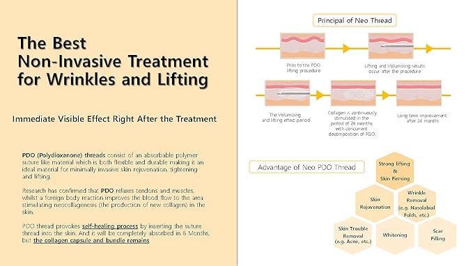 - Product Benefits : PDO threads are used for revitalization, contouring, wrinkle smoothing and face and body lifting.