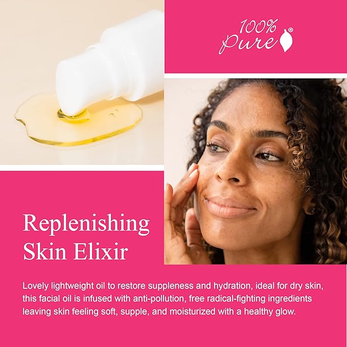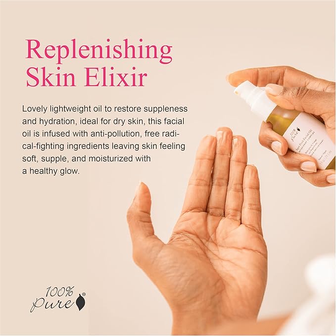 - REPLENISHING SKIN ELIXIR - Lovely lightweight oil to restore suppleness and hydration, ideal for dry skin, this facial oil is infused with anti-pollution, free radical-fighting ingredients leaving skin feeling soft, supple, and moisturized with a healthy glow.
