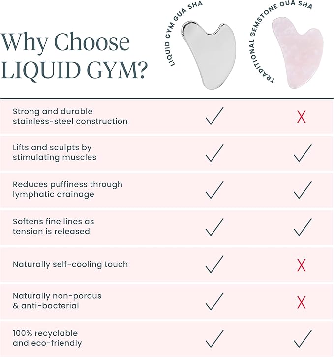 - ππππ-π€π¨ππππ§π¬ π¦πππ‘ πππ₯π π§π’π’ππ¦ - When it comes to skin care tools, choose high-quality options like our LIQUID GYM Gua Sha made from self-cooling and recyclable stainless steel. This gua sha tool for face can also be used as a jawline sculptor to promote facial contouring and definition. Investing in effective skin care tools like a guasha tool can help you achieve your desired results and promote long-term skin health.