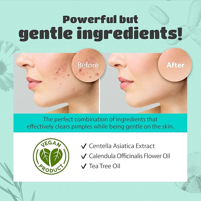 - ✅ PREMIUM NATURAL ACTIVE INGREDIENTS: We believe that less is more when it comes to skincare, which is why our high-quality formula is comprised of natural active ingredients. Heal through nature with Centella Asiatica extract, Calendula Officinalis flower oil, and tea tree leaf oil.