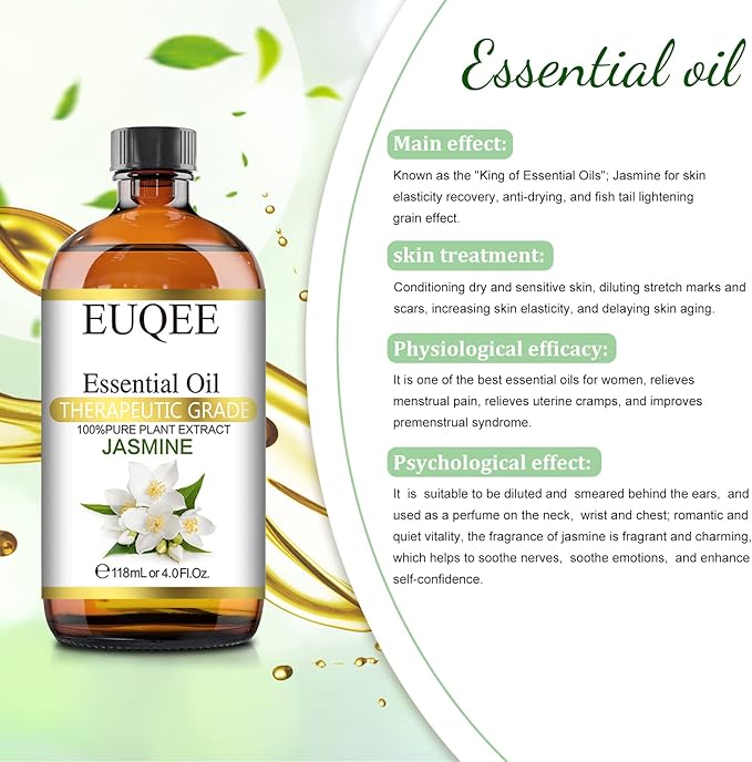 Jasmine Essential Oil 118ml Premium Jasmine Oil for Aromatherapy, Diffuser, DIY Soap, Candle Making - 4Fl Oz