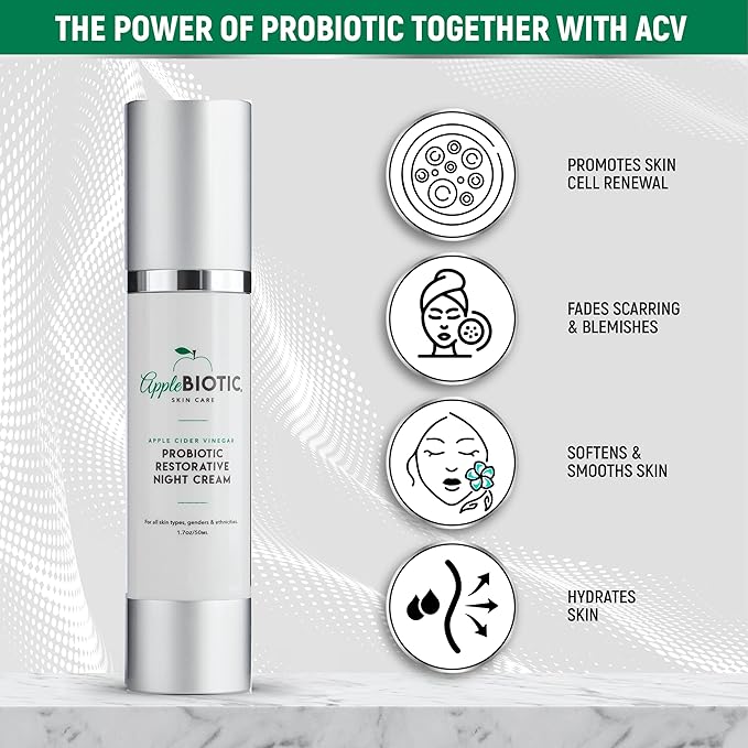 - Facial Moisturizer With Probiotic Extract: Infused with probiotic extract, this cruelty free night cream helps with skin renewal to tighten sagging skin & helps to diminish the appearance of wrinkles.