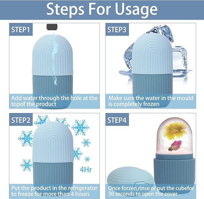 - 🙌🏼 EASY TO USE: Fill the ice roller massager mold with water. Freeze in refrigerator for more than 4 hours,when using it apply the ice to your skin in 30 second intervals in circular motions. For optimal results, It is recommended to use 1 or 2 times a day