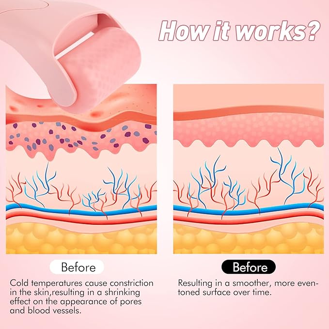- Calm Skin:The coolness of the ice roller closes pores while the roller promotes blood circulation,which can reduce puffiness and wrinkling,reduce redness,fight puffy,fatigue,dry eyes, dark circles,early fine lines,restore radiance and lifts face.