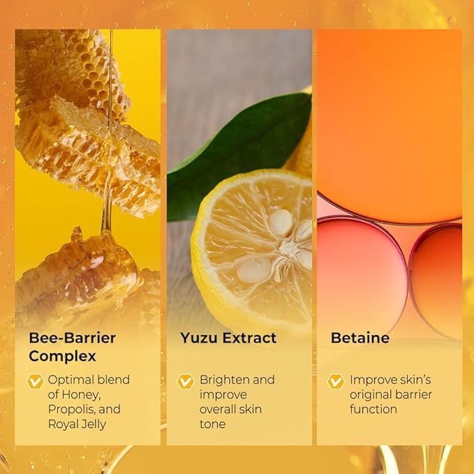 - PATENTED Bee-Barrier Complex: Optimized blend of honey, propolis and royal jelly with antioxidant-rich benefits improves skin's moisture barrier by replenishing and nourishing dry skin with fast hydration.