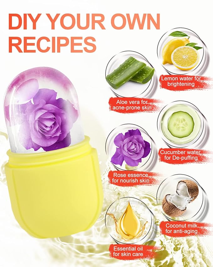- 🍒Creative skin care match - Our face roller ice mold can be customized the recipe creatively according to your skin's needs; lemonade for whitening,green tea for anti-inflammatory, cucumber water for de-puffing and anti-aging effects of coconut milk, aloe vera is suitable for acne-prone skin and sunburn, rose water to tighten pores, and can also be used with essential oils.