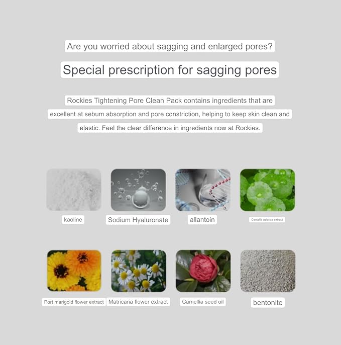- ROKKISS PORE TIGHTENING CLEANING MASK PACK (5.3oz) - Experience the power of kaolin clay and bentonite in this mask pack, as they work together to effectively tighten and minimize the appearance of pores.