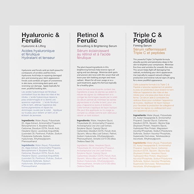 [3-PACK] MD Selections Retinol Hyaluronic Ferulic Triple C Peptide Lifting Serum Bundle for Face, 3 Fl Oz - Skin Firming Plumping Boost Collagen