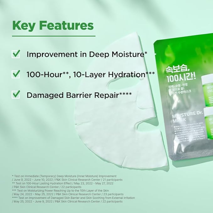 ISOI Moisture Dr. Mask Pack, Hydrating & Soothing Sheet Mask with Tea Tree, Ceramide & Hyaluronic Acid, Nourishing Skin Barrier Care, Korean Skin Care (10EA)