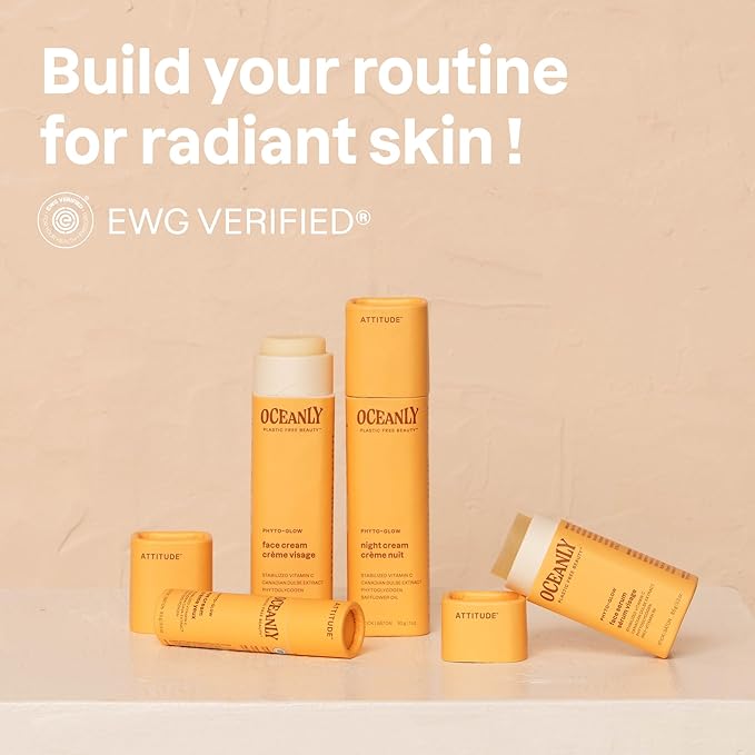 ATTITUDE Oceanly Night Cream Bar, EWG Verified, Plastic-free, Plant and Mineral-Based Ingredients, Vegan and Cruelty-free Face Moisturizing Products, PHYTO GLOW, Unscented, 1 Ounce