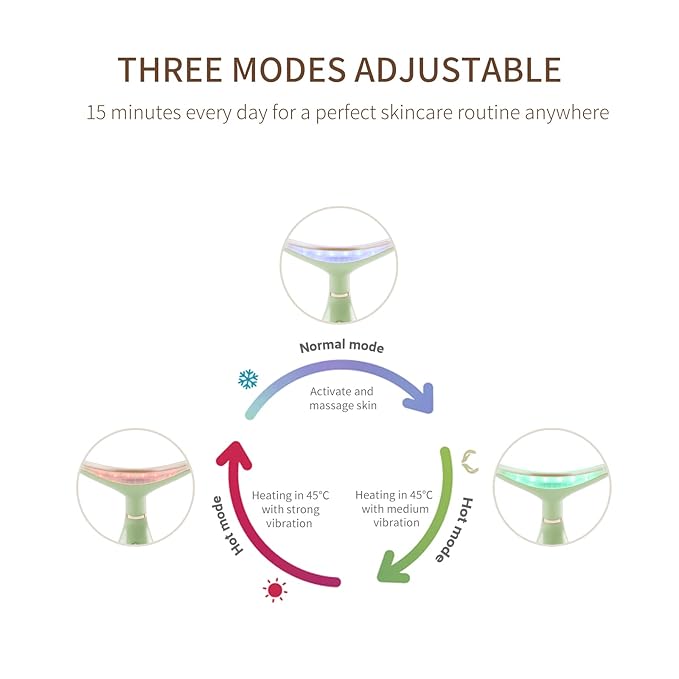 - ✔ 【YOU CAN ADJUST 3 DIFFERENT MODES】Skin care face massager has 3 massage modes for you to choose from. Mode 1 is gentle vibration with normal temperature, mode 2 is medium vibration with heat, and mode 3 is strong vibration with heat, which makes you feel pampered after a long workday, providing you with a simple and comfortable skin care experience every day.