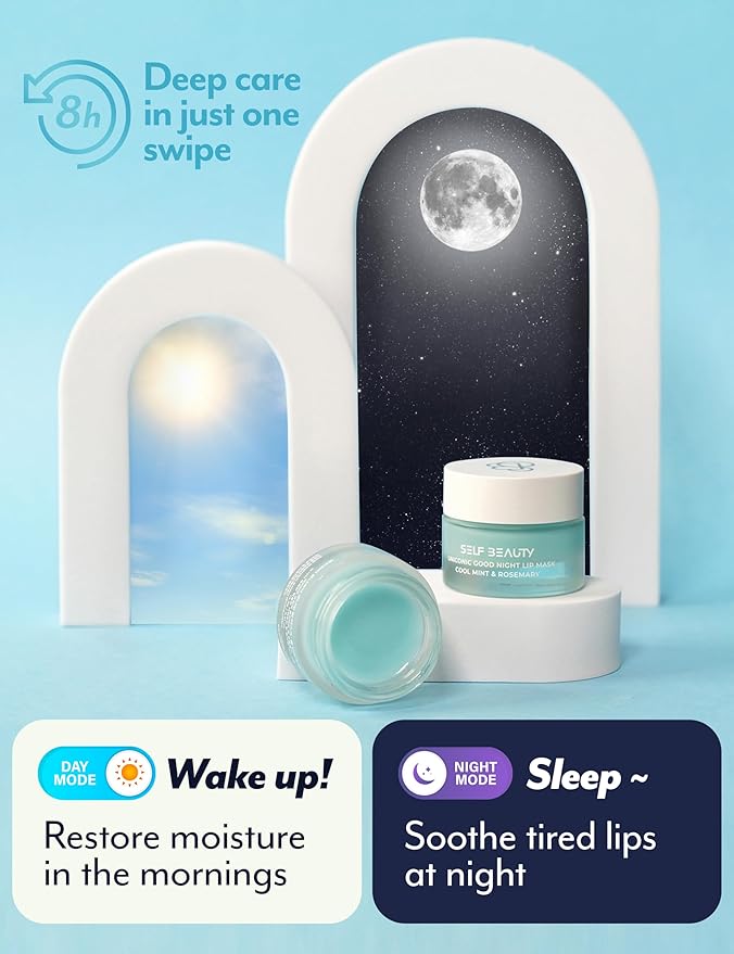 SelfBeauty Cool Mint Rosemary Lip Mask - Vegan Balm, Daily Moisturizer, Overnight Hydrating Treatment With Cool Mint, Scrub Exfoliator Intensive Repair, 0.51fl.oz